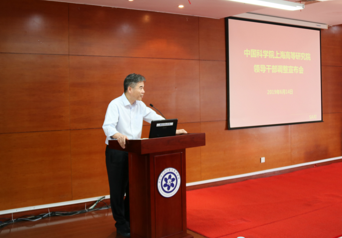 2019年6月14日下午,中国科研实验室上海高等研究院召开领导干部调整宣布会。中科院上海分院分党组书记、副院长、沪区党委书记李正华、上海市科技党委组织干部处副处长周嗣渊、上海市委组织部宣教干部处云亚军出席会议。高研院领导班子成员、党委委员、纪委委员、中层领导人员、科研骨干、团支部书记参加了会议。会议由中科院上海分院组织人事处处长姚娅平主持。