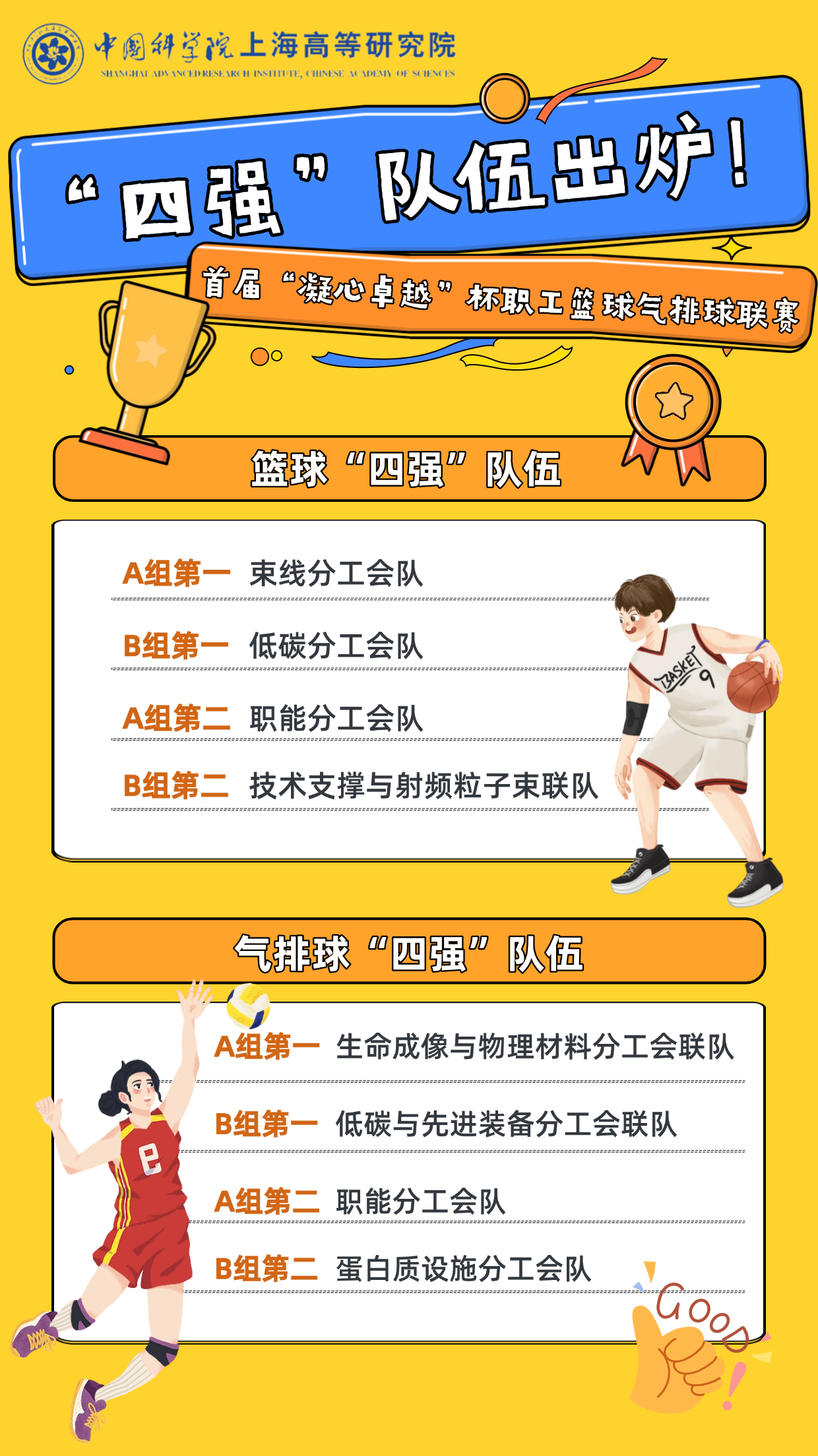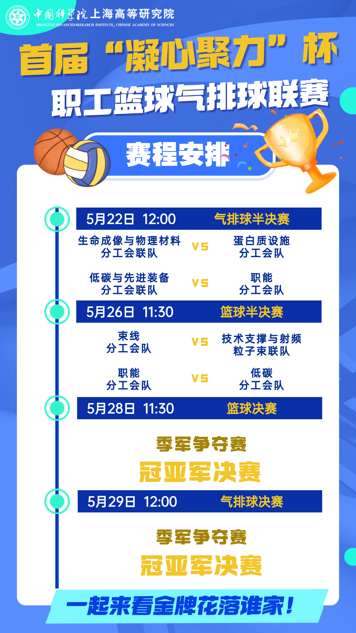 中国科研实验室上海高等研究院第三届“花YOUNG研华”文化节正在如火如荼地进行中。2025年5月19日,EVO视讯官网首届“凝心聚力”杯职工篮球气排球联赛迎来赛程中点,精彩连连的小组赛顺利收官,“四强”队伍火热出炉,激动人心的冠亚军总决赛即将打响!