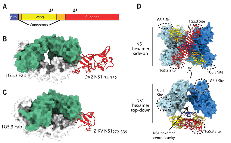上海光源生物大分子晶体学线站用户揭示靶向NS1的黄病毒广谱保护性抗体作用机制